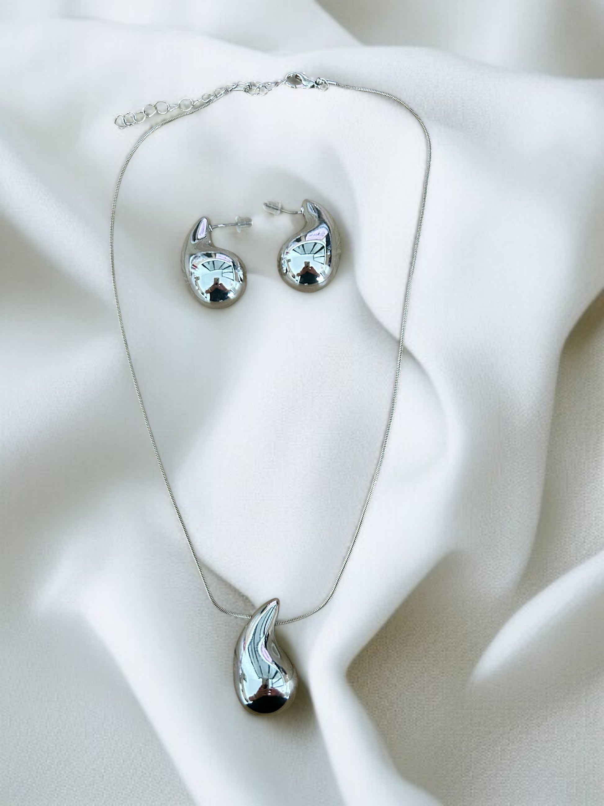 Parure comprenant 2 bijoux goutte argentées fantaisie