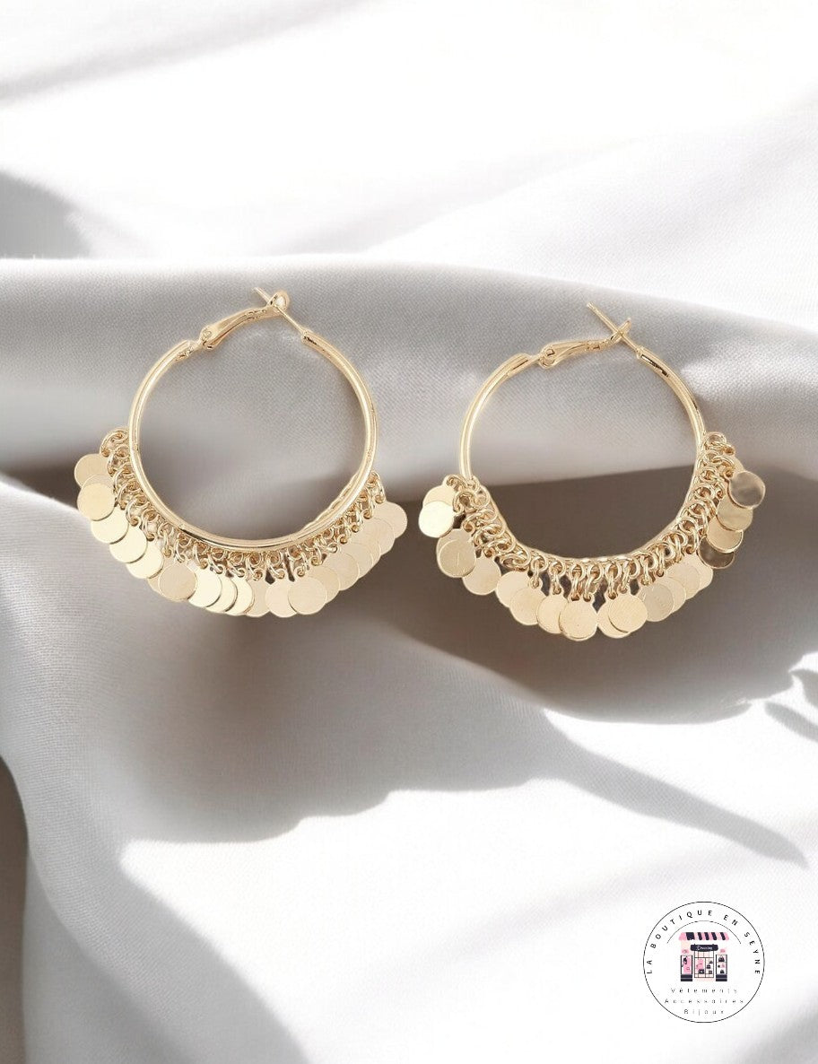 Boucle d’oreille créoles dorées à breloques