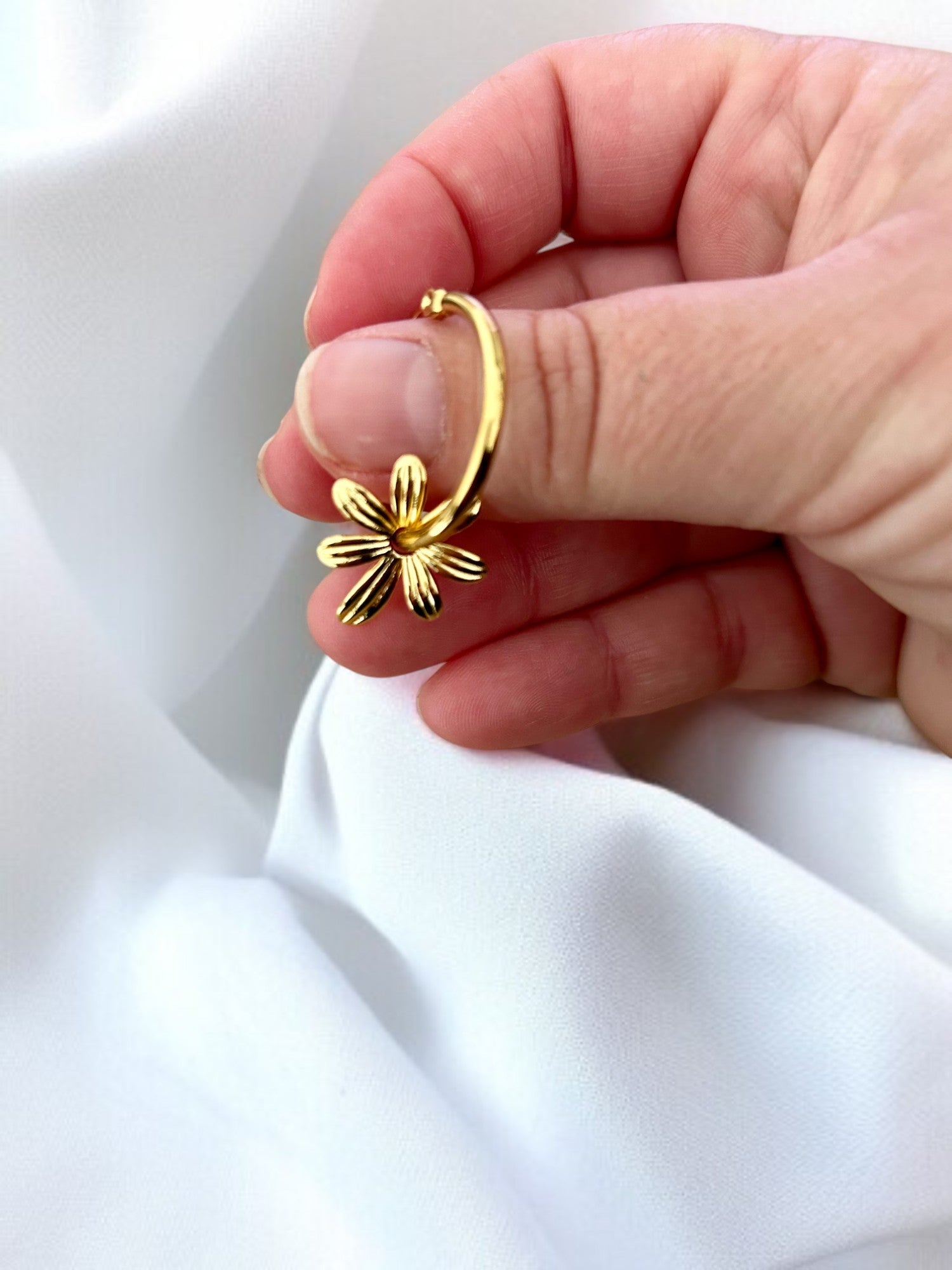 Boucles d’oreilles créoles & pampille fleurs dorées