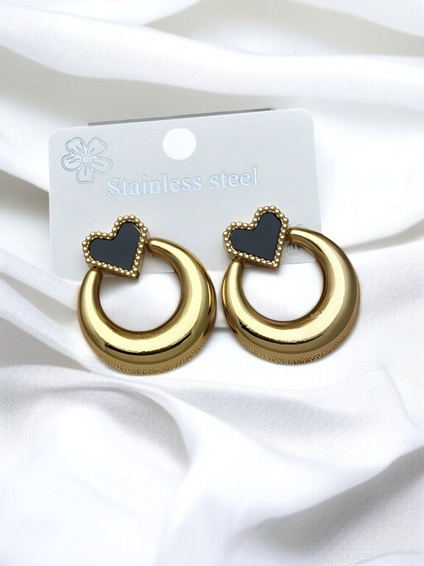 Boucles d'oreilles créoles dorées et cœur blanc ou noir
