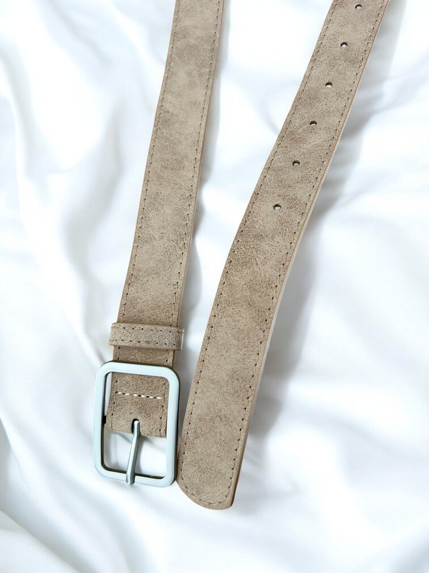 Ceinture beige boucle carré argentée