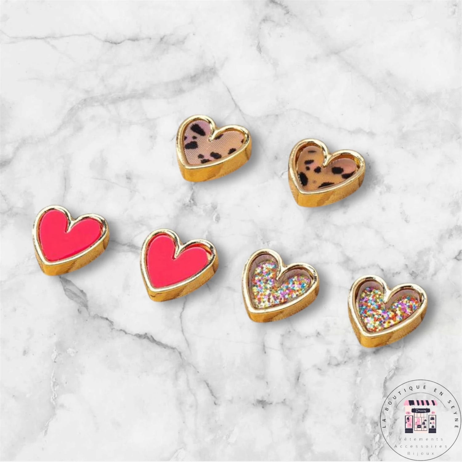 Lot de 3 paires de Boucles d’oreilles dorées cœur
