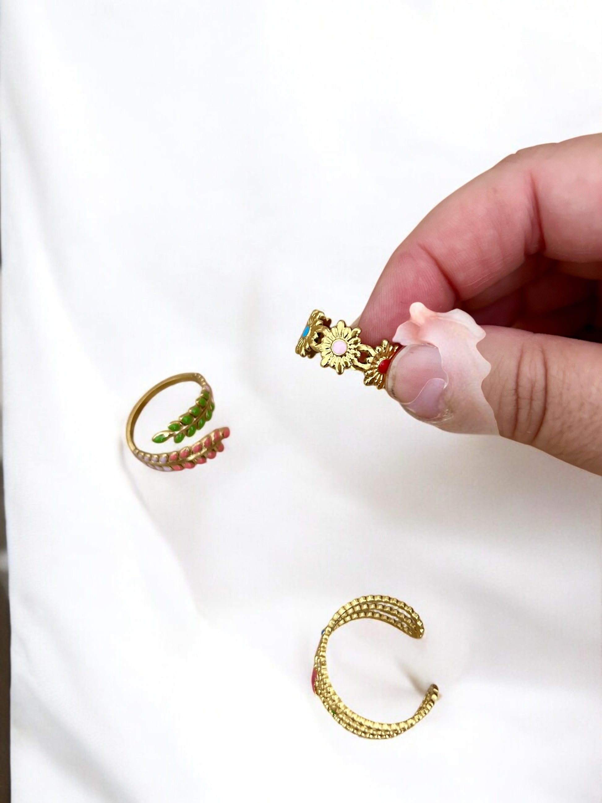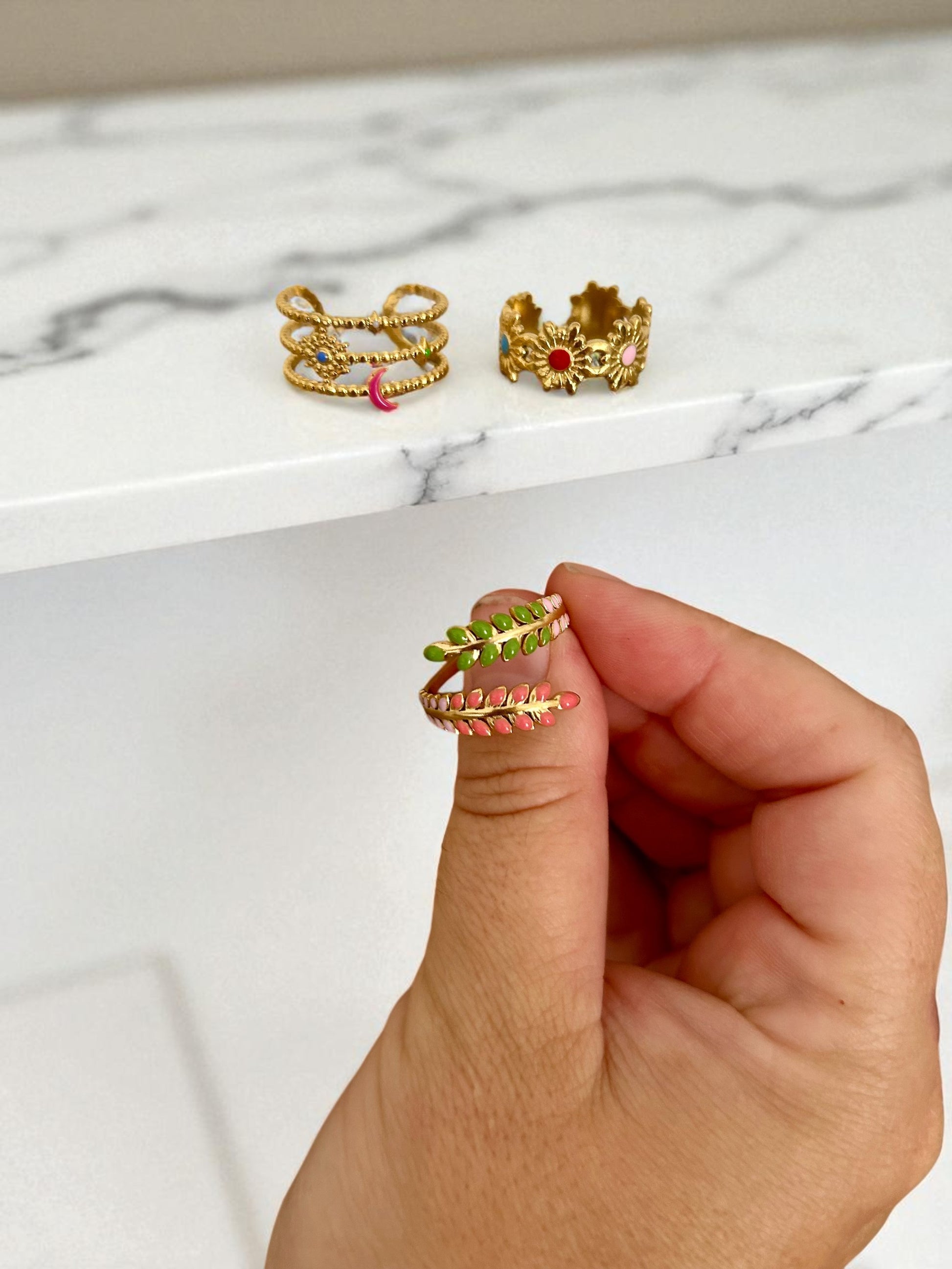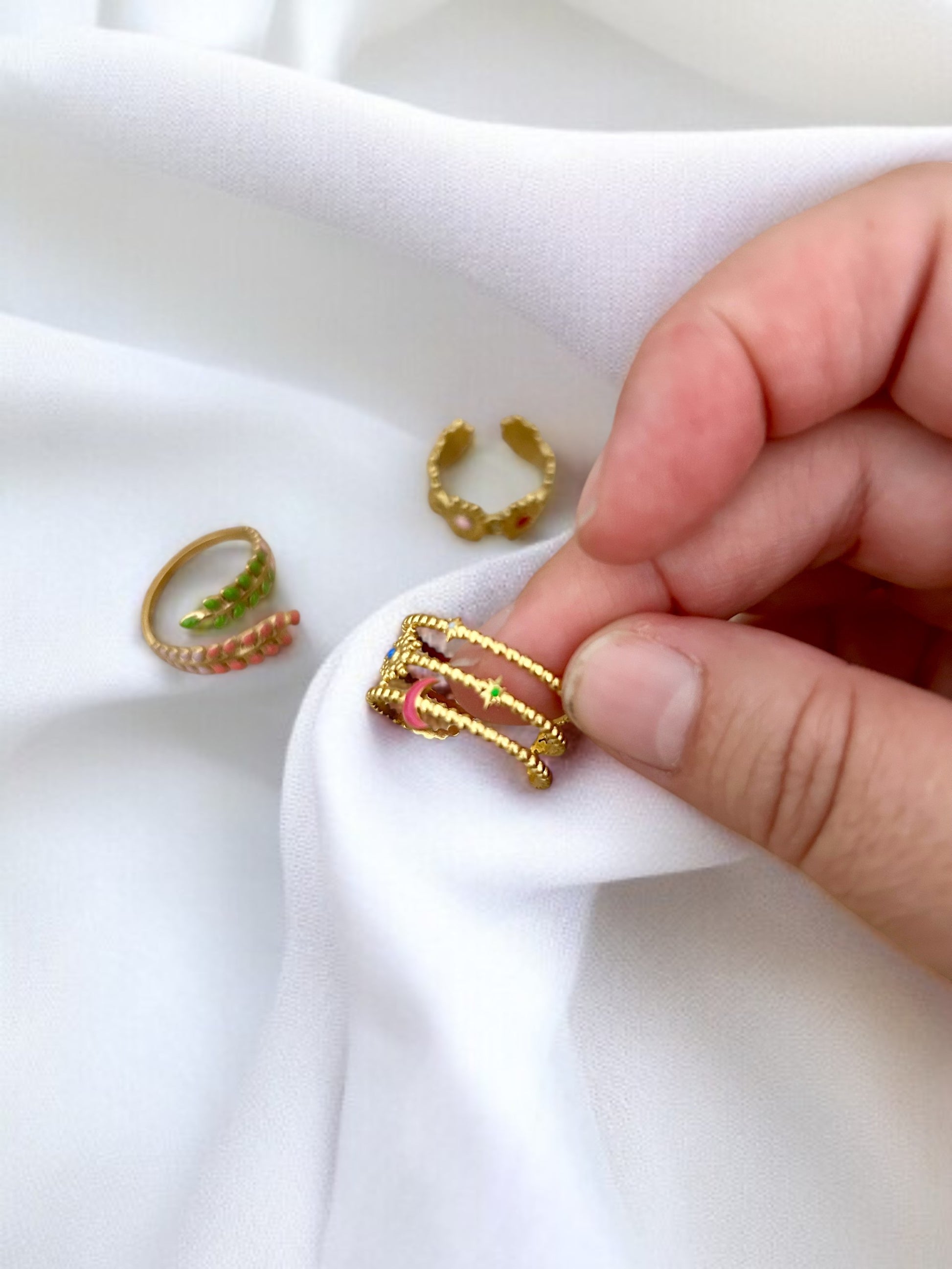 Lot de 3 bagues dorée multicolores & réglables ajustables