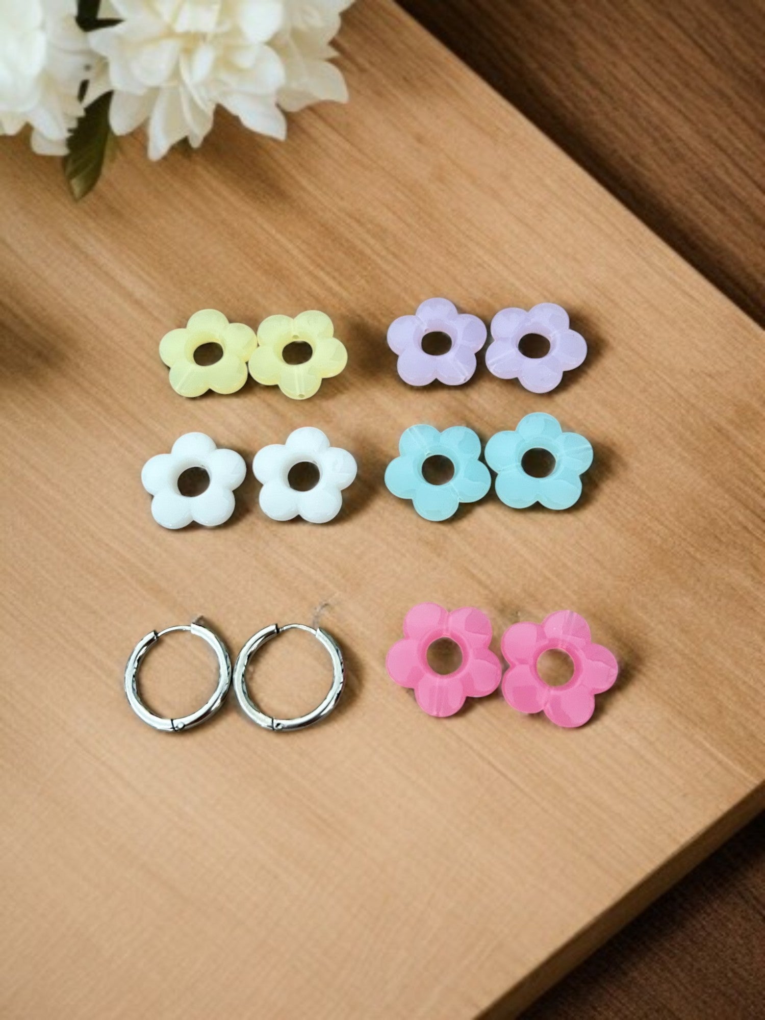 Lot de boucles d’oreilles créoles dorées & 10 pampilles fleurs interchangeables à 5 pétales