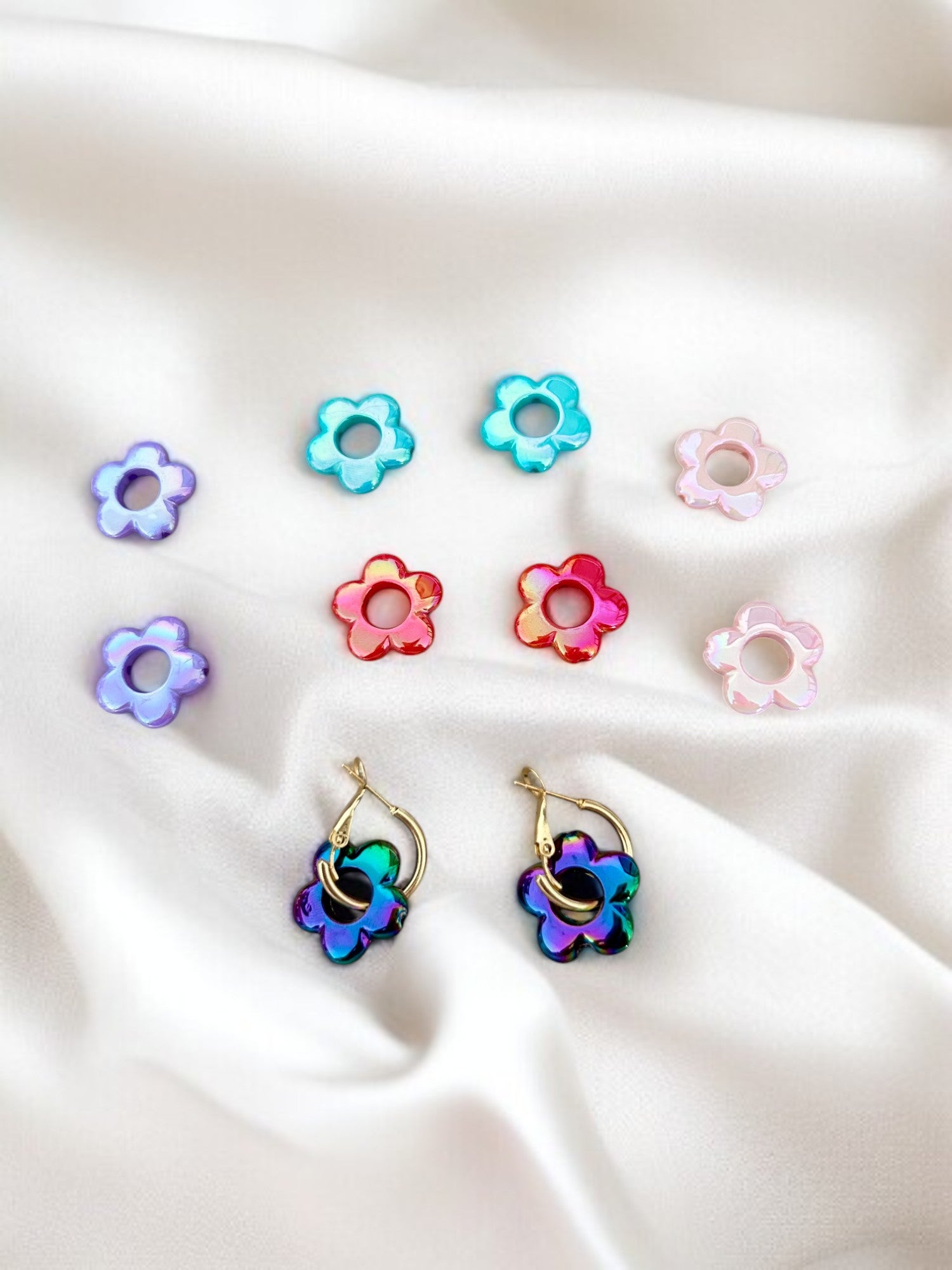 Lot de boucles d’oreilles créoles dorées & 10 pampilles fleurs interchangeables à 5 pétales