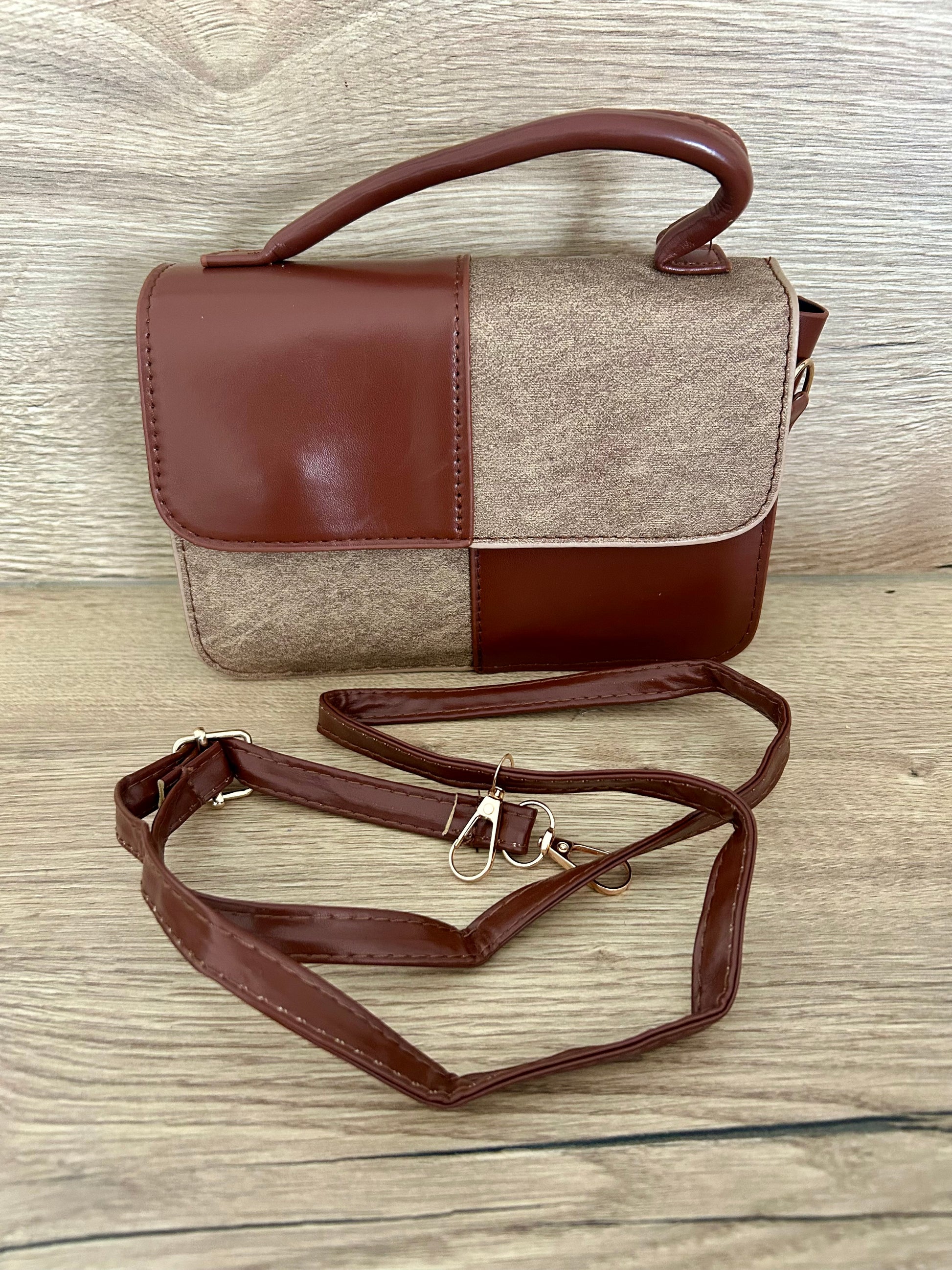 Mini sac bandoulière marron clair et foncé