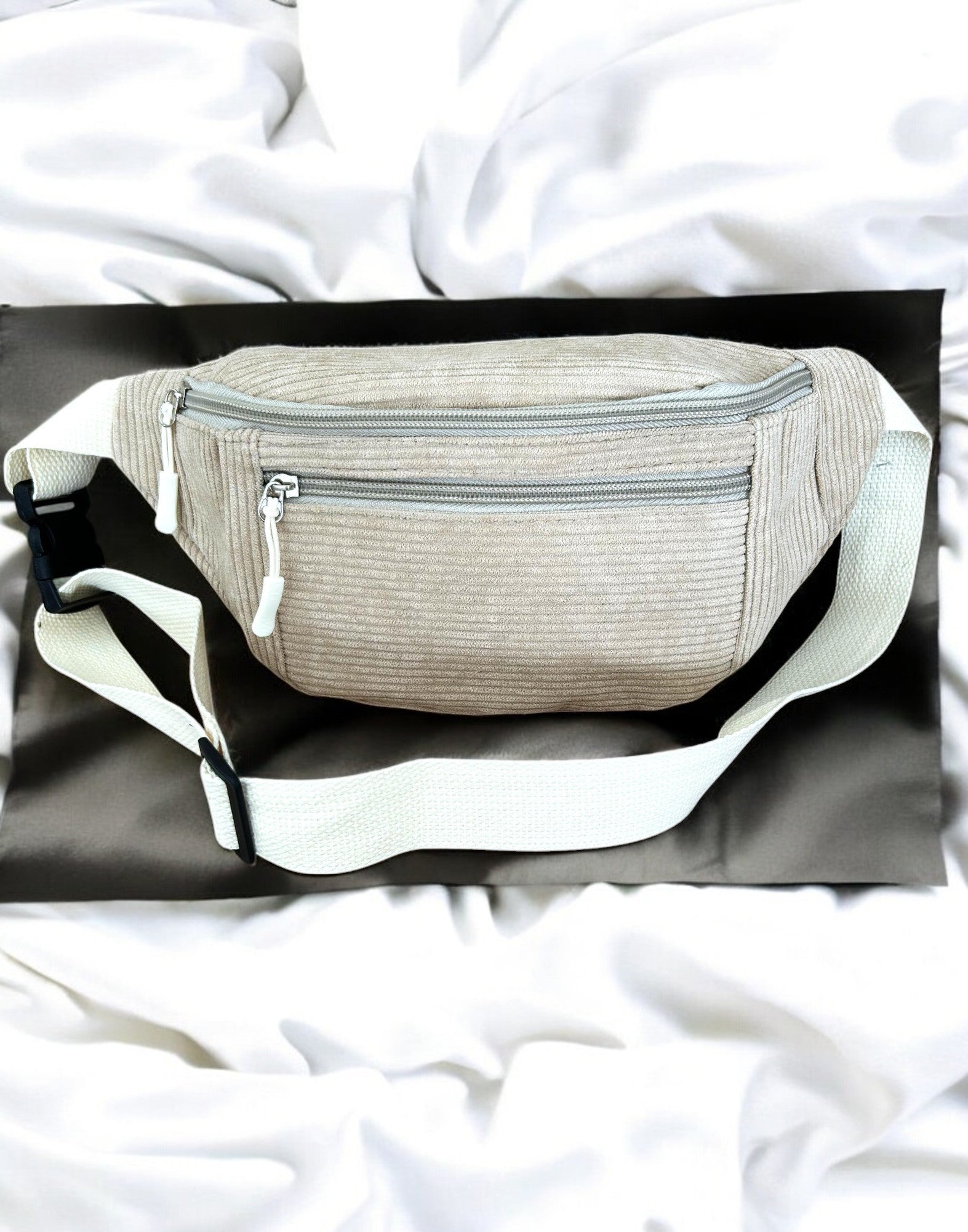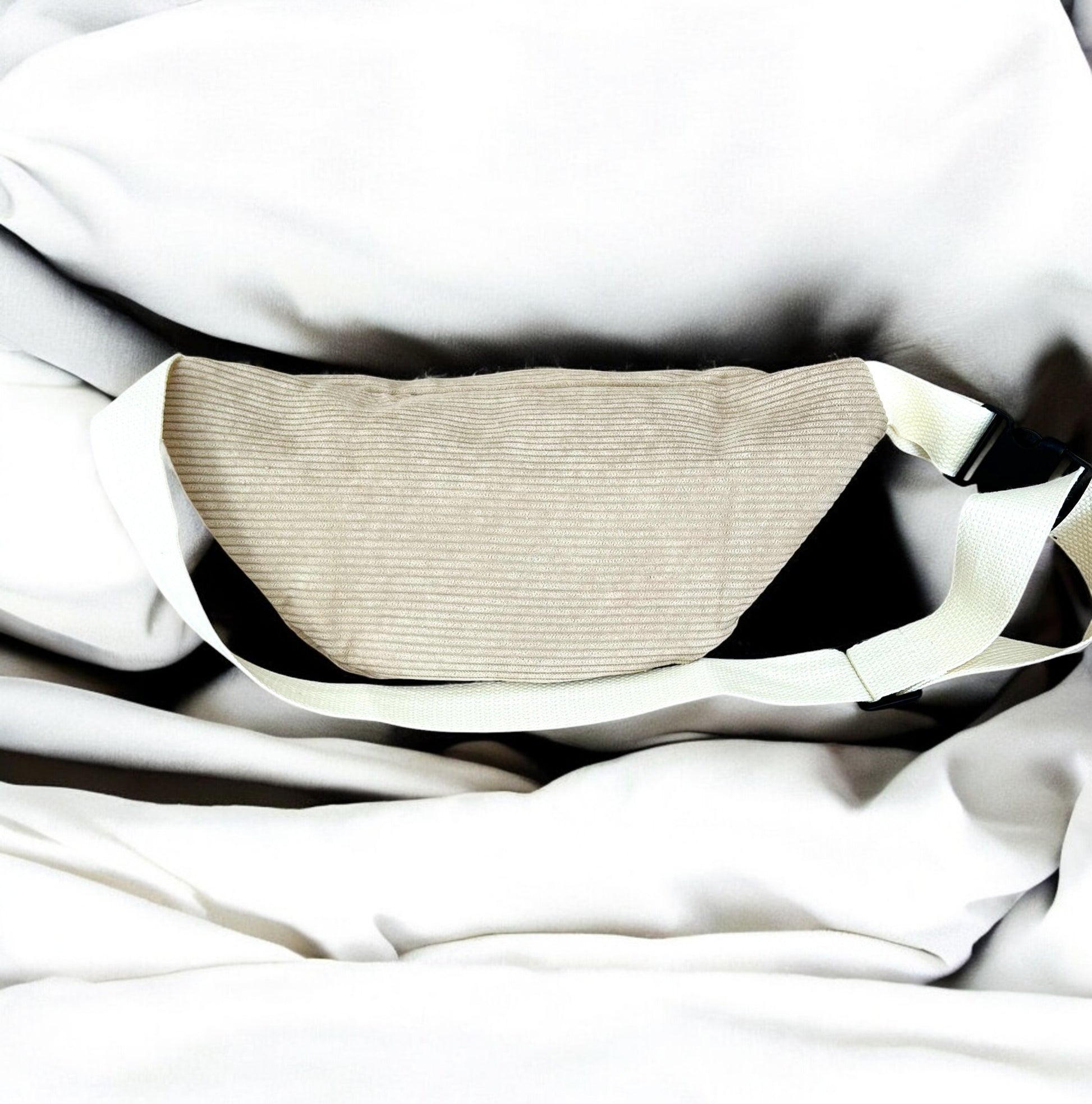 Sac banane beige velours côtelé femme