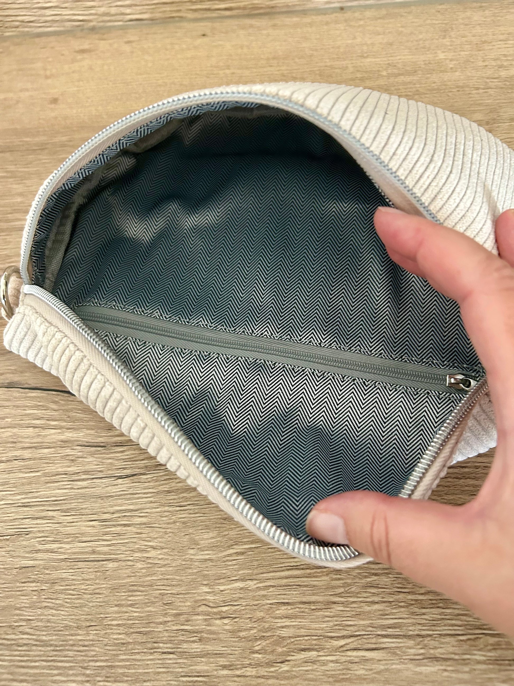 1 poche à l’avant Intérieur satiné avec 2 poches à l'intérieur dont une avec fermeture éclair
